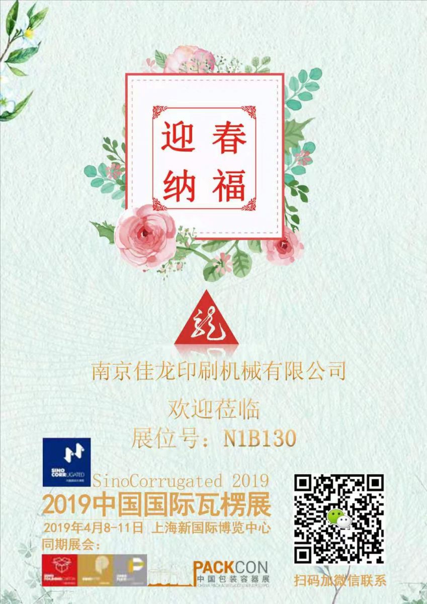 2019中國(guó)國(guó)際瓦楞展!南京佳龍印刷機(jī)械有限公司攜最新全自動(dòng)翻轉(zhuǎn)機(jī)參展,展位號(hào)N1B130。歡迎各位新老顧客蒞臨指導(dǎo)!